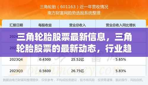 在当今经济快速发展的时代,轮胎行业作为汽车产业链的重要环节,一直备受关注,三角轮胎作为国内轮胎行业的佼佼者,其股票动态更是受到广大投资者的关注,本文将围绕三角轮胎股票的最新信息,探讨行业的发展趋势以及未来的前景展望,以期帮助投资者更好地把握市场动态,做出明智的投资决策。